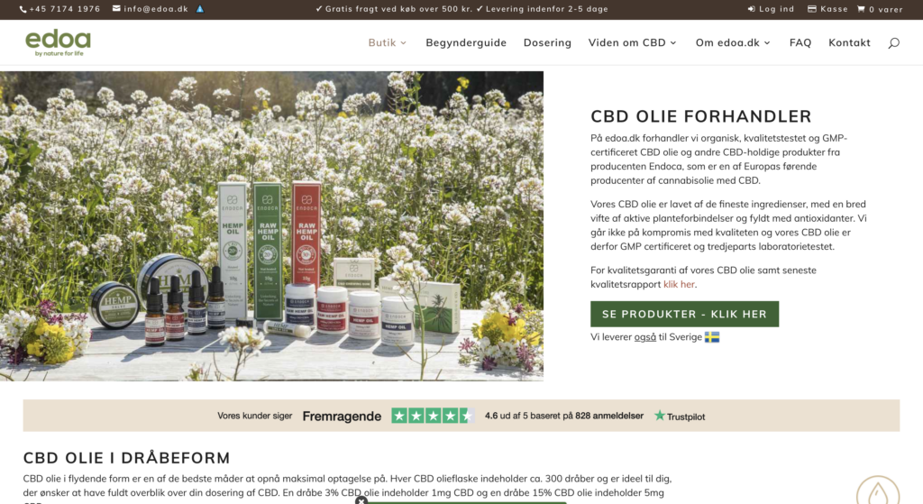 På deres hjemmeside finder du et fint udvalg af CBD Olier, ekstrakter, kapsler, cremer mm. Der er altså nok at vælge imellem, hvis man ønsker at købe hos Edoa.